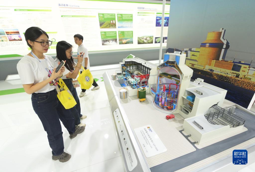 10月20日,参观者在国家电力投资集团有限公司展位参观拍摄“国和一号”核电机组模型。