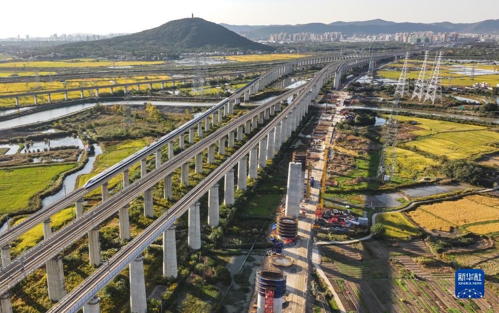 金秋时节,在中铁四局巢马城际铁路建设工地,施工人员利用晴好天气抓紧施工,确保重点工程建设进度。巢马城际铁路是国家“八纵八横”高铁网沪汉蓉快速通道合肥至上海间的重要组成部分,设计时速350公里。