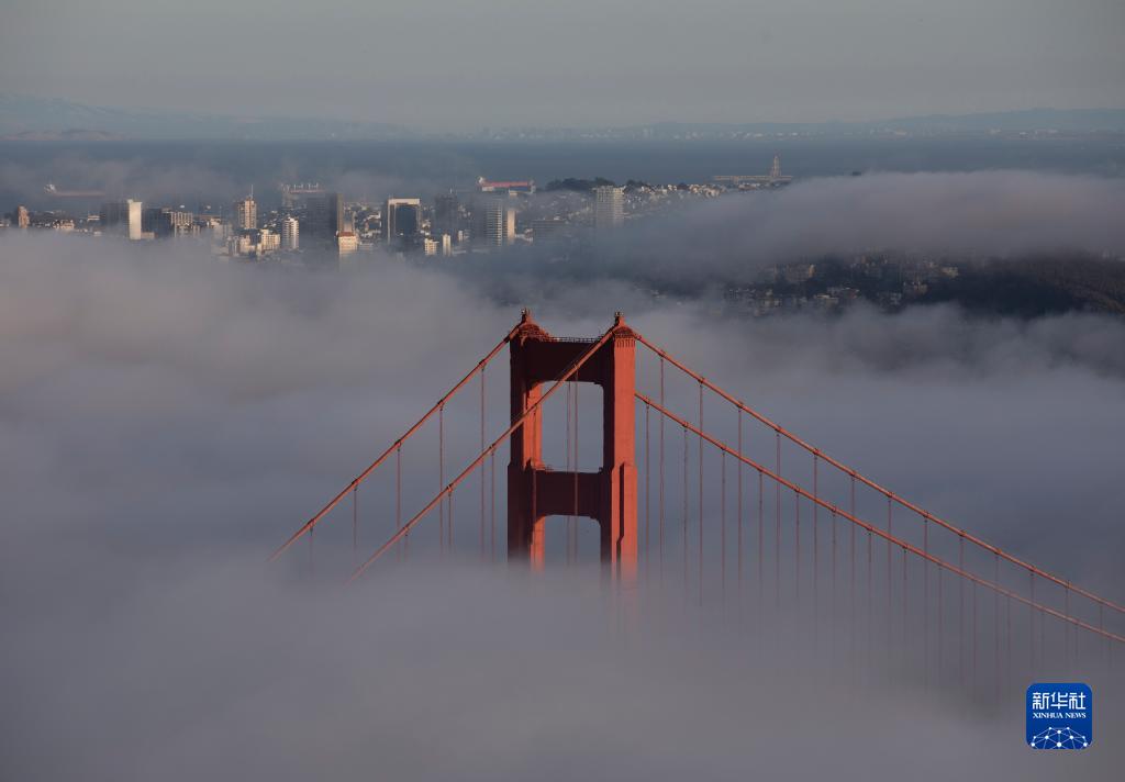 10月17日,美国加利福尼亚州旧金山出现美丽云海。