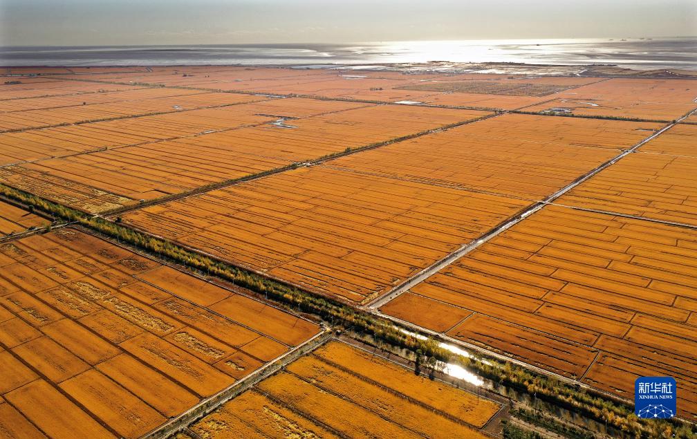 这是盘锦市辽河三角洲的稻田(10月20日摄,无人机照片)。