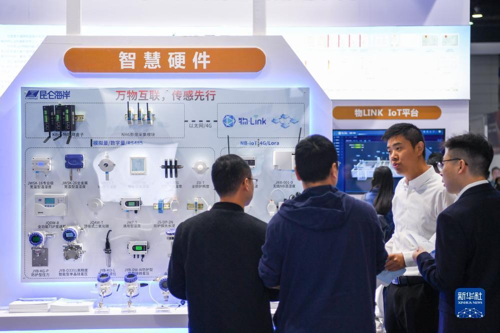 10月21日,观众在2023世界物联网博览会活动现场参观智能硬件。