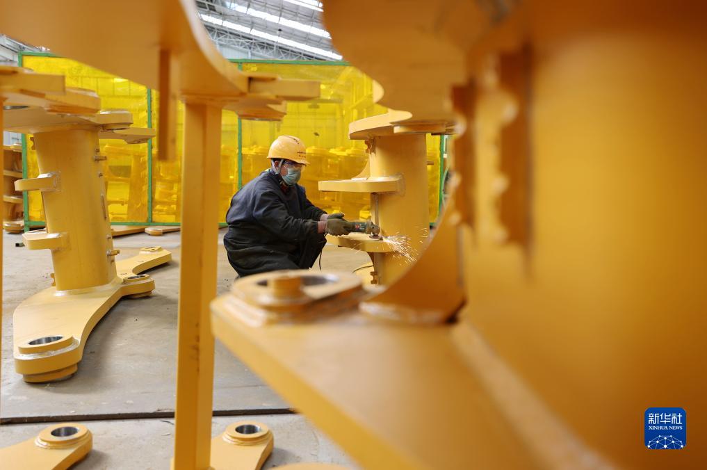 10月21日,在位于山东省临沂市兰山区的山东华星工程机械有限公司生产车间,工人在进行打磨作业。