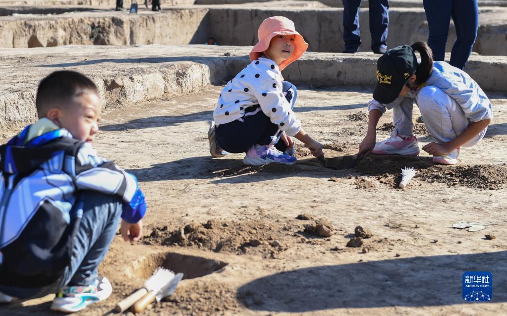 10月21日,活动参与者在路县故城遗址考古发掘现场体验考古发掘。