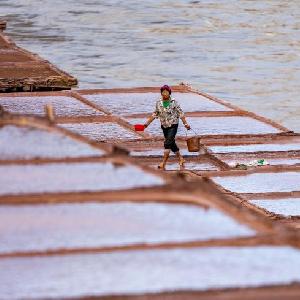 西藏昌都市芒康县纳西民族乡位于澜沧江畔,当地从唐代开始制盐,距今已延续1300余年。盐田在澜沧江两岸依山而建,由多根木柱搭架,架上用透水性强的泥土铺成平面夯实。当地村民仍保持着原始的手工晒盐方式,他们从澜沧江畔的盐井、盐池中取出卤水倒入盐田,经阳光蒸晒、风干,结晶成盐。远远望去,盐田错落有致,景色奇美。