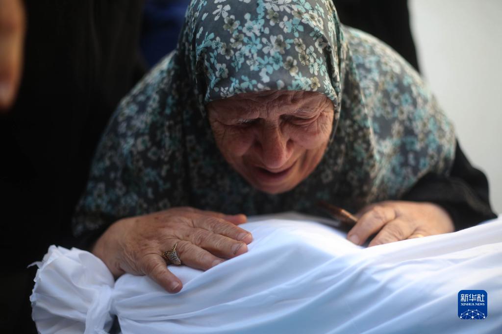 10月21日,在加沙地带南部地区,一名妇女为逝去的亲友哭泣。