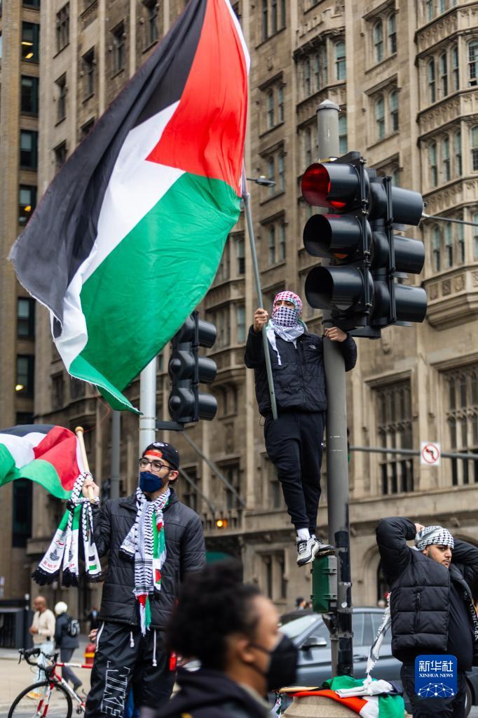 当天,芝加哥民众走上街头参加游行活动,表达对巴勒斯坦人民的支持,抗议以色列对加沙地带的封锁。