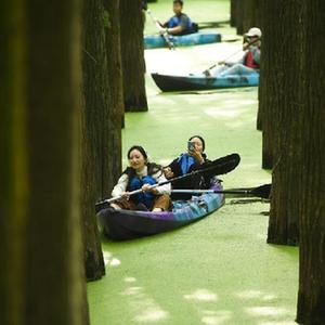 金秋时节,浙江杭州临安青山湖近百亩池杉和落羽杉混交林呈现“抹茶森林”景观,引得大批游客前来泛舟、漫步观光。这片浸没于水中的森林每到秋季就会铺满浮萍,浪漫景观宛如“绿野仙踪”。