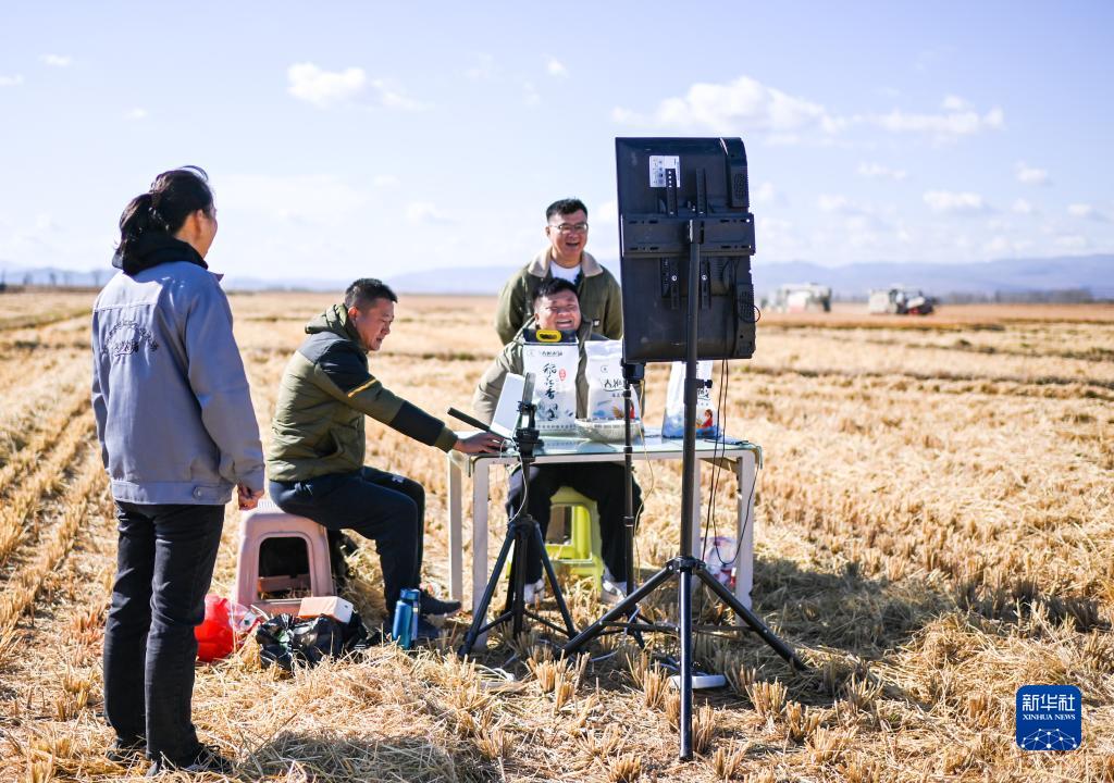 金秋十月,吉林省迎来水稻收获季节。在吉林省延边朝鲜族自治州珲春市三家子满族乡东岗子村,“80”后巾帼“新农人”刘春艳在稻谷飘香的田野上驾驶着水稻收割机,在她身后,几个电商主播将刘春艳刚刚收割好的水稻通过网络卖向全国。