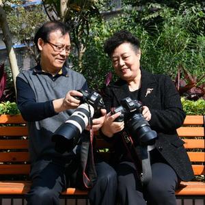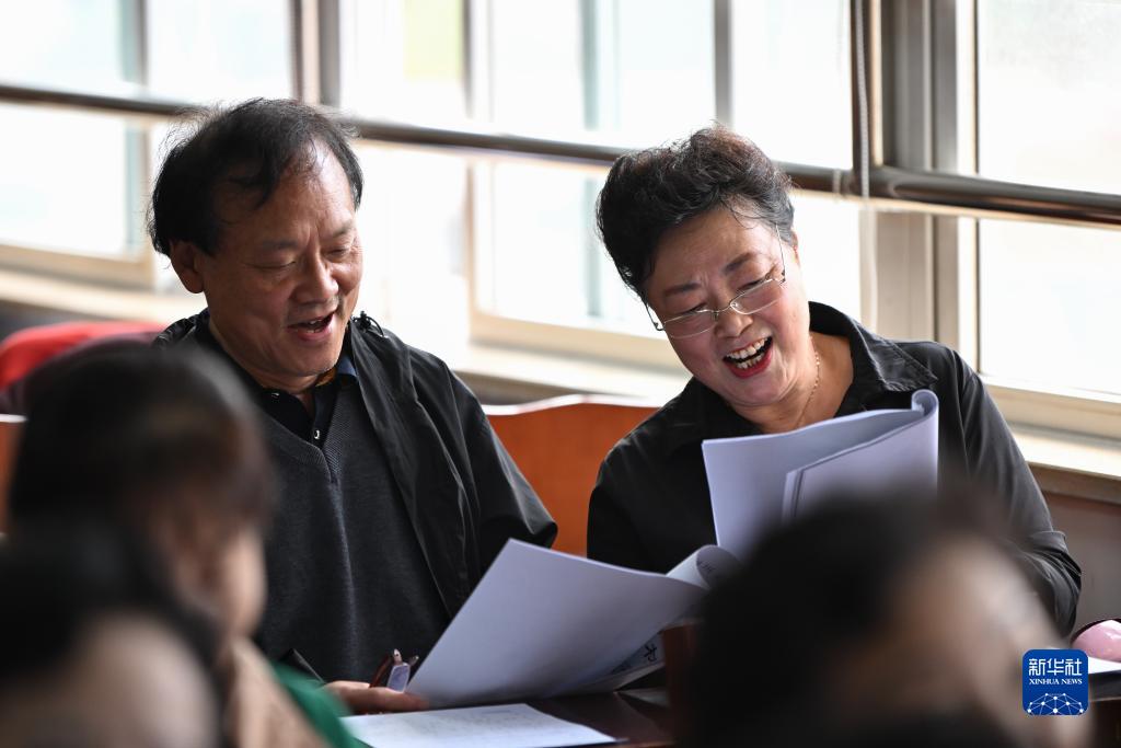 10月19日,郑义华(右)和丈夫李永东在四川老年大学上声乐课。