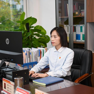 陆秀兴在古灶村村委会的办公室办公(10月17日摄)。