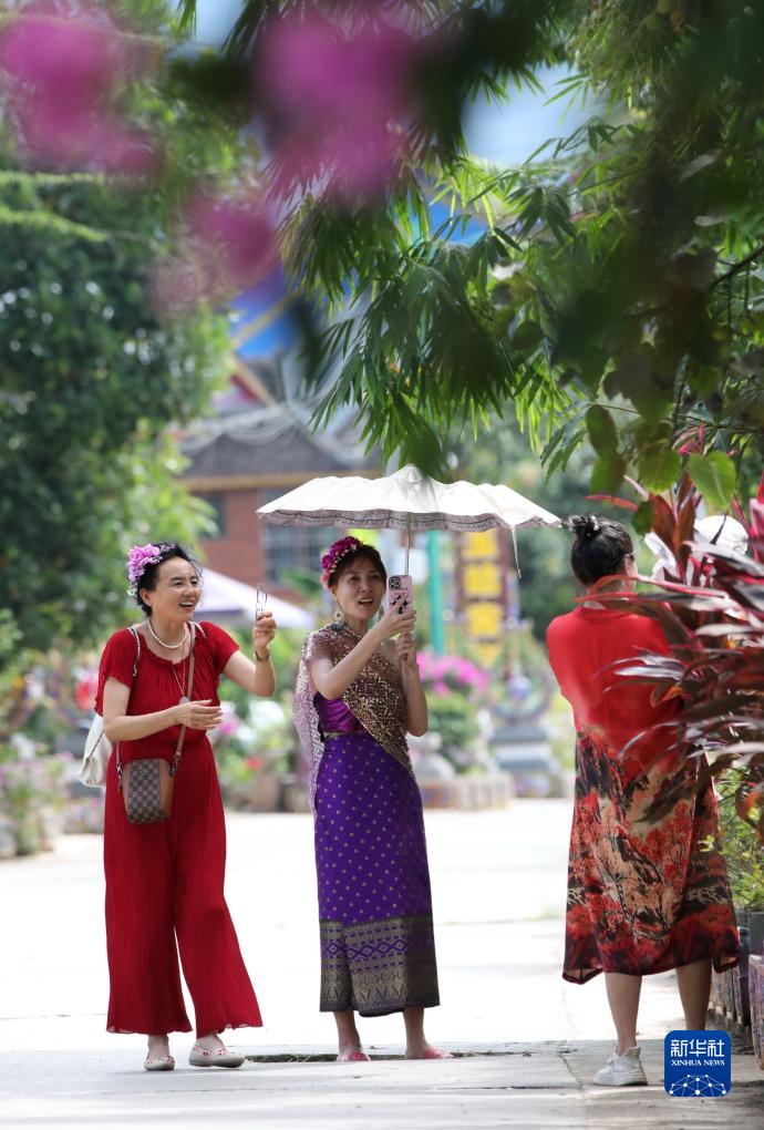 10月19日,游客在云南省景洪市勐罕镇曼听村游玩。