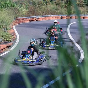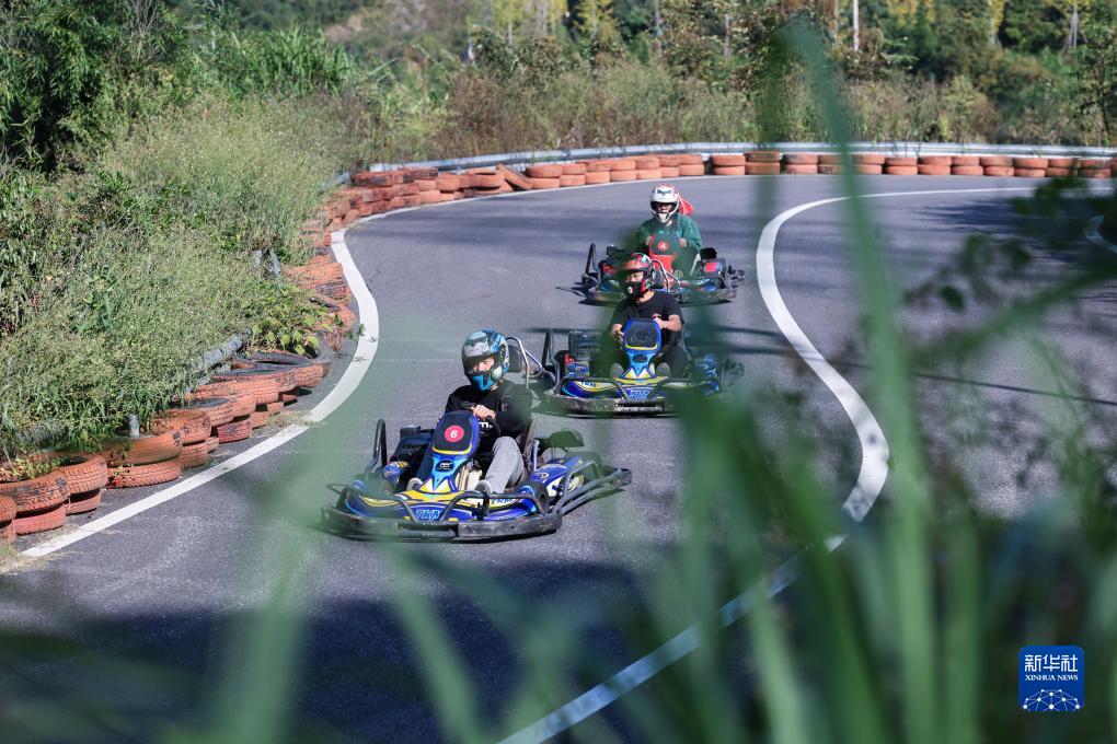 10月23日,游客在建德市杨村桥镇岭源乐活岛休闲基地体验卡丁车。