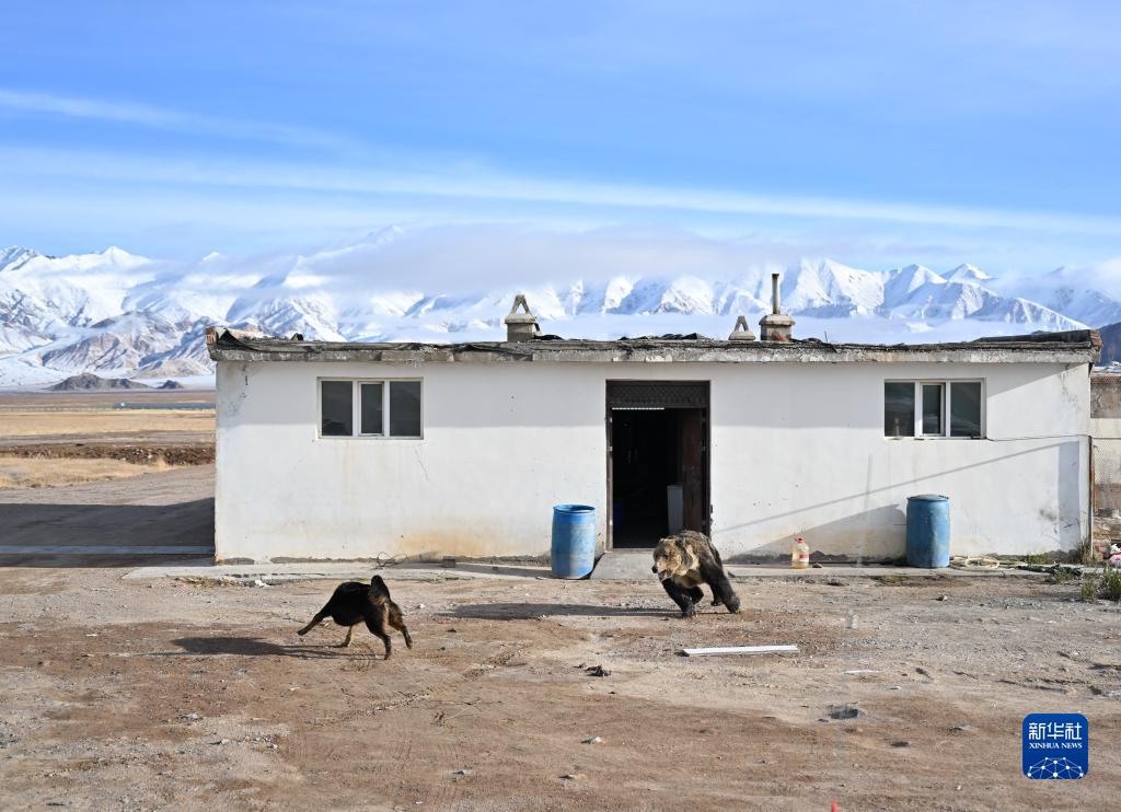 10月17日,一只藏马熊(右)闯入阿尔金山国家级自然保护区依协克帕提管护站。