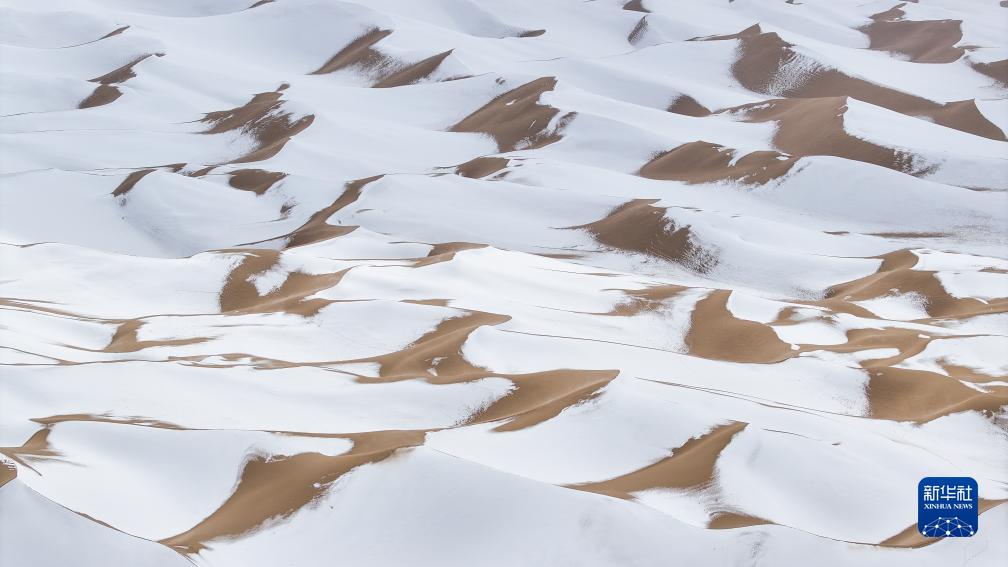 10月16日在阿尔金山国家级自然保护区拍摄的雪后库木库里沙漠(无人机照片)。