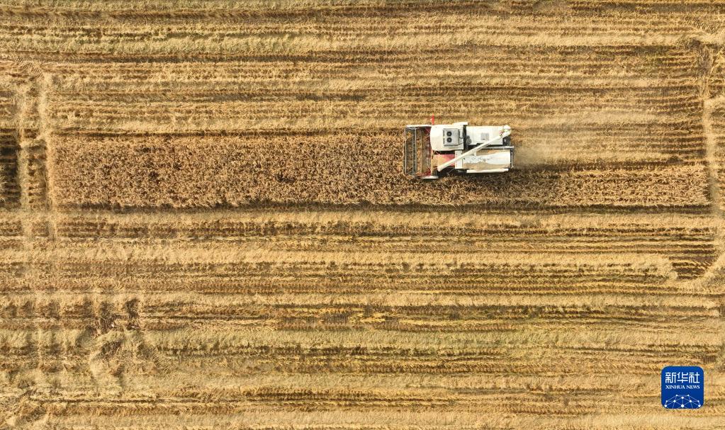 金秋时节,辽宁省阜新市彰武县大冷镇上三家子村的稻田里机声隆隆,一片丰收的繁忙景象。