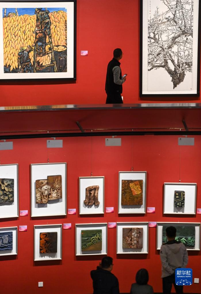 10月24日,参观者在陕西省美术博物馆欣赏艺术作品。