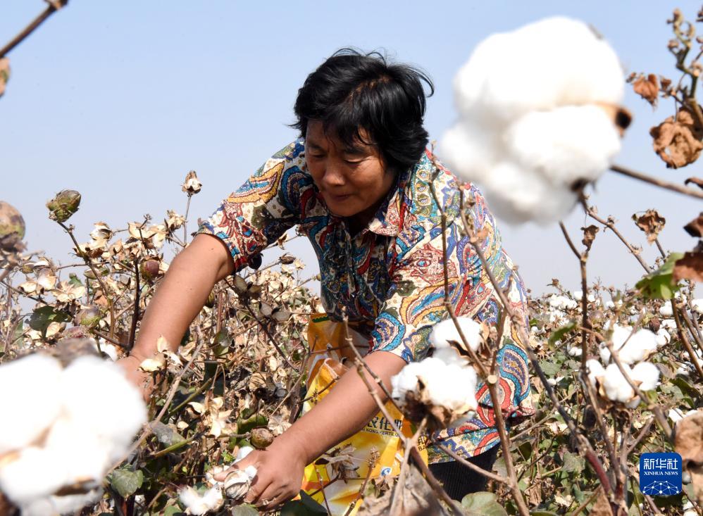 10月24日,在河北省邯郸市成安县北乡义镇辛庄村棉田内,棉农在采摘棉花。