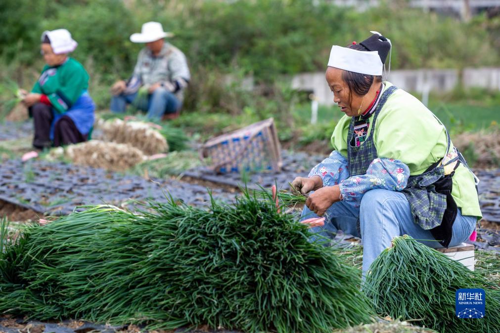 10月24日,农民在贵州省安顺市西秀区七眼桥镇九龙屯村田间采收香葱。