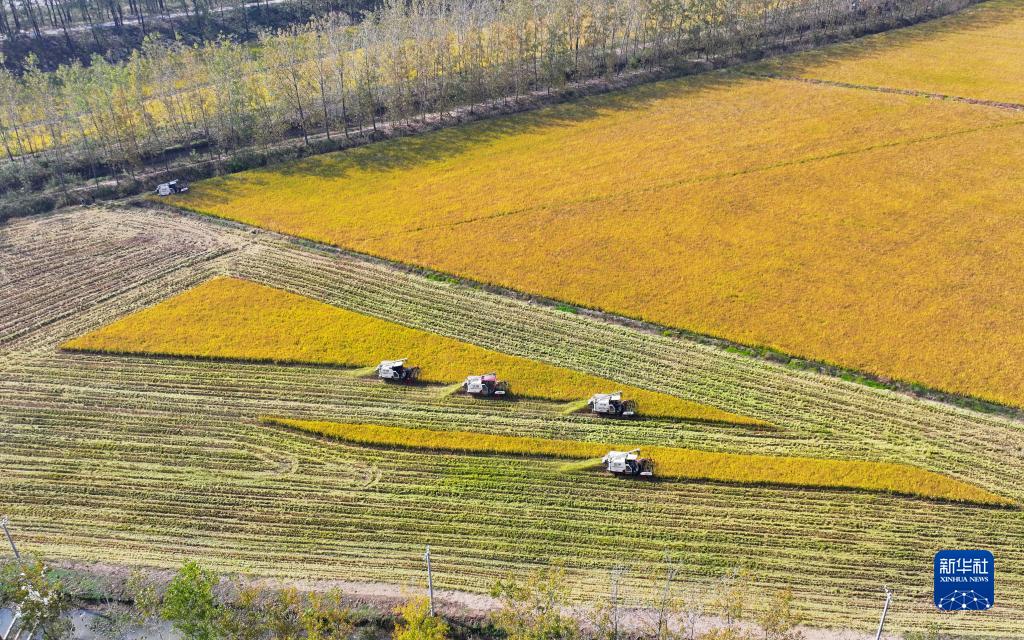 秋收时节,农民在田间忙着收获各种作物,各地一派农忙景象。