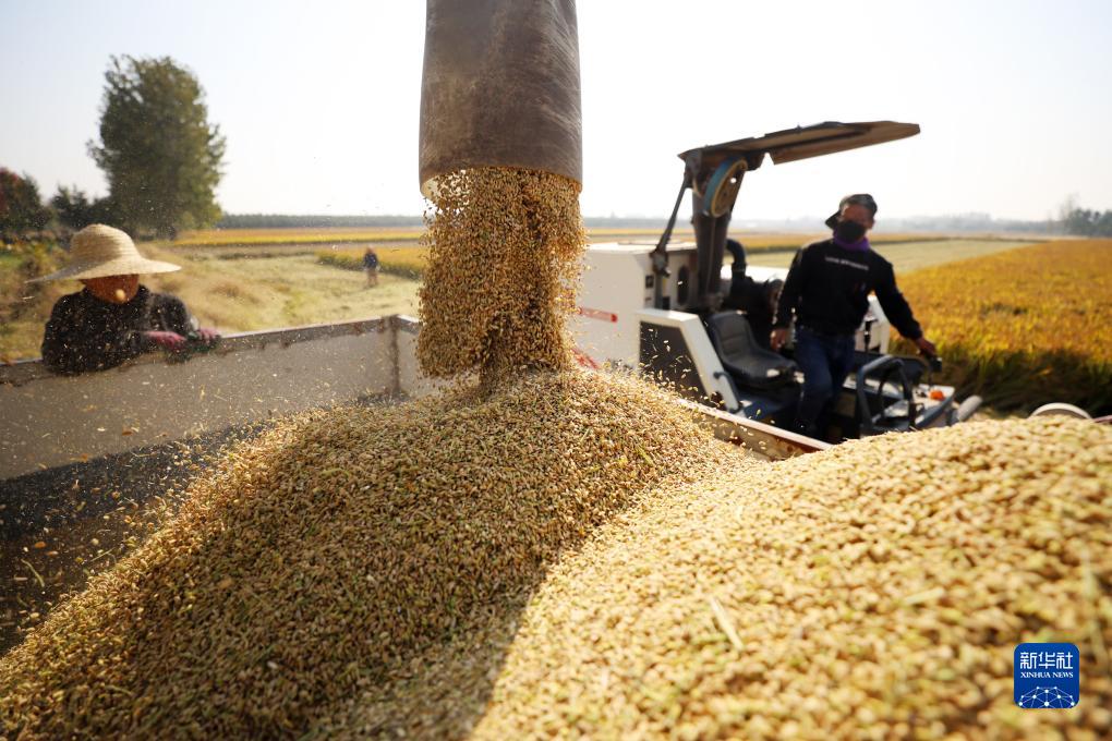 秋收时节,农民在田间忙着收获各种作物,各地一派农忙景象。