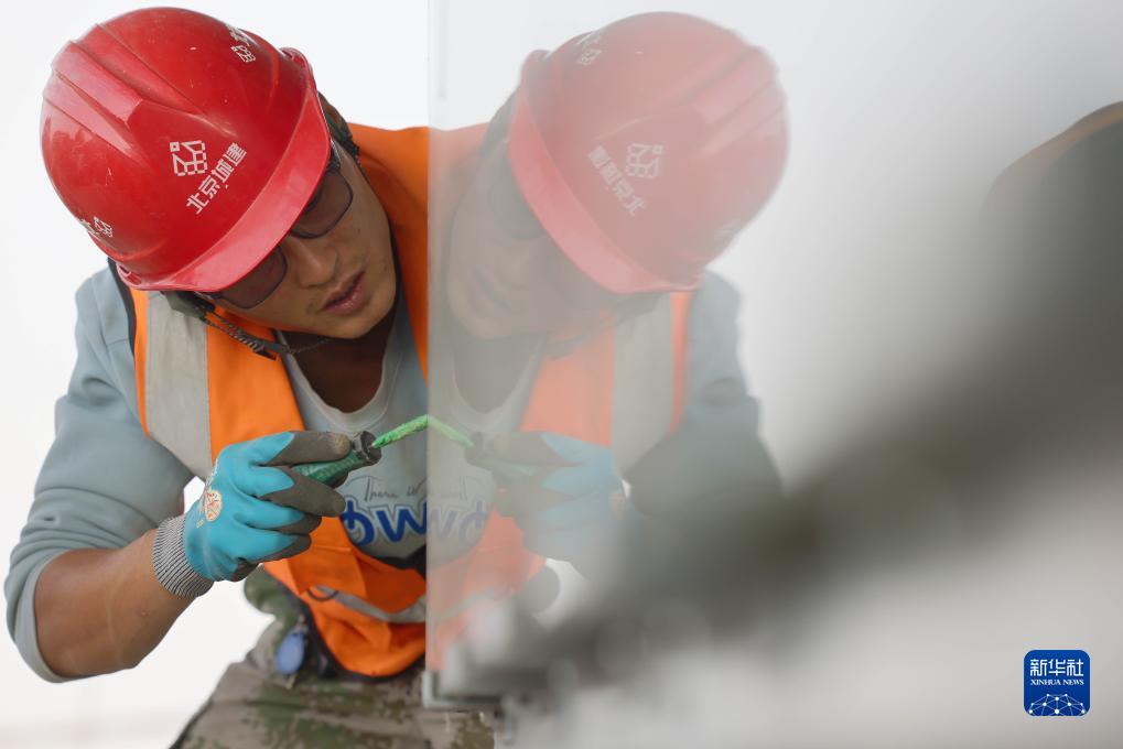 工人在雄安体育中心体育场施工(10月24日摄)。