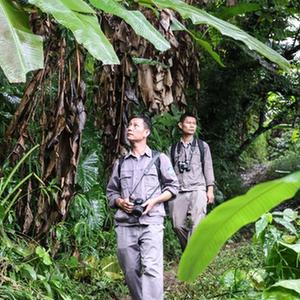 凌晨5点,海南长臂猿监测队队员李文永已在晨光泛起前抵达长臂猿常活动的区域。根据猿鸣定位寻踪,统计海南长臂猿种群个数,拍摄照片和视频,这些都是他的工作内容。“有时为监测需要,背着几十斤重的生活物资和装备,在山上吃住也是常事。海南长臂猿的‘歌声’,谁听了都喜欢,很想一直能听到它们的声音”,李文永说。