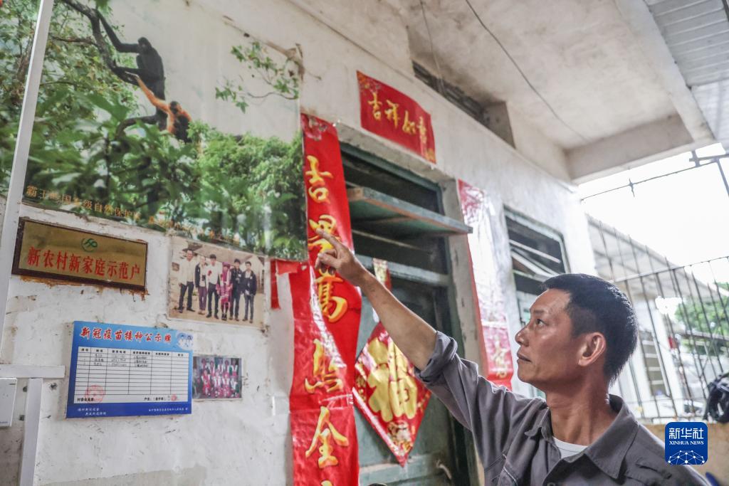10月18日,海南长臂猿监测队队员李文永在家中给记者介绍墙上一张海南长臂猿照片背后的拍摄故事。