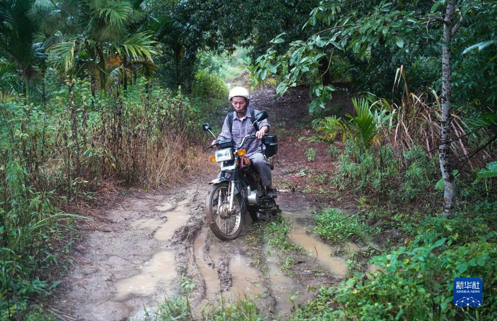 10月18日,海南长臂猿监测队队员李文永在海南热带雨林国家公园霸王岭片区工作。
