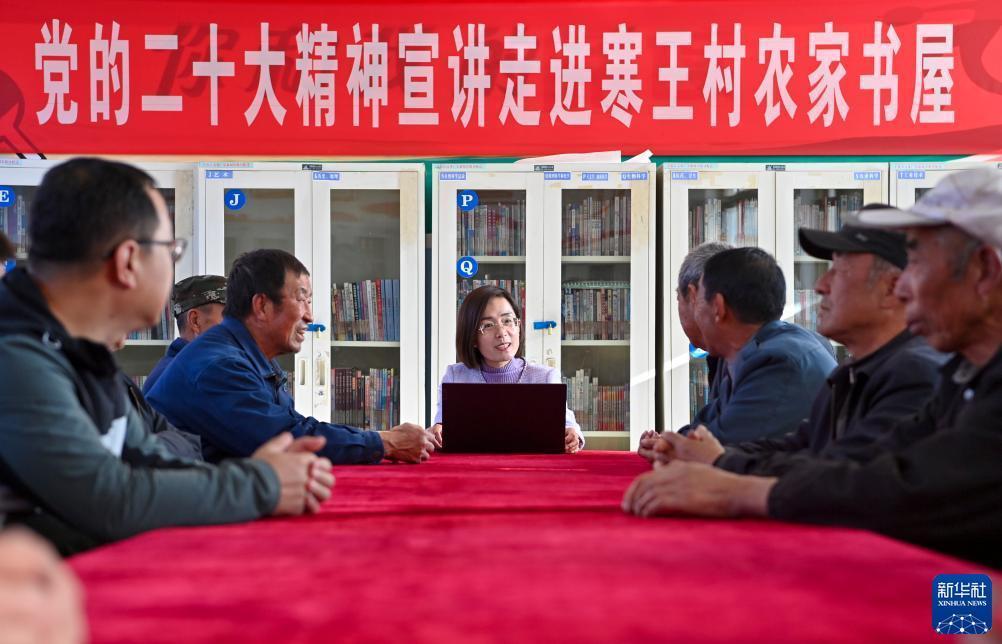 10月24日,山西省左权县委党校工作人员周丽芳在左权县寒王村农家书屋为村民宣讲。