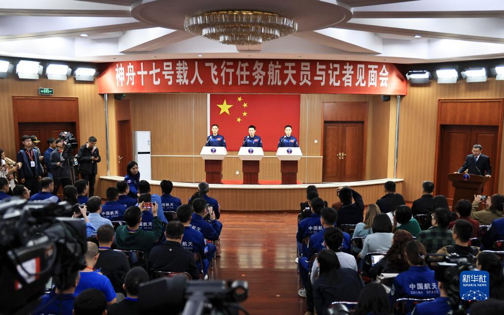 新华全媒+丨神舟十七号载人飞行任务航天员与记者见面