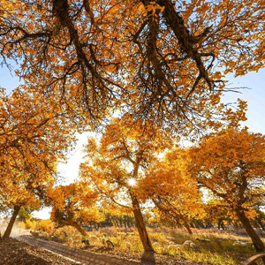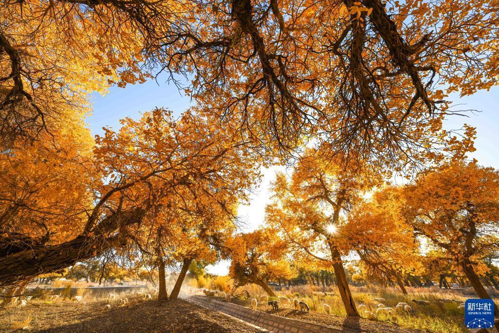 金秋时节,内蒙古自治区阿拉善盟额济纳旗的胡杨林披上“金装”。