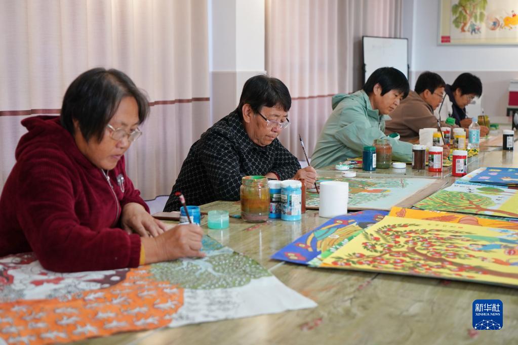10月25日,辛集市王下村农民在赶制农民画产品订单。