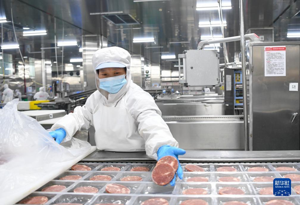 10月23日,工人在重庆市丰都县兴义镇恒都集团牛肉加工车间作业。