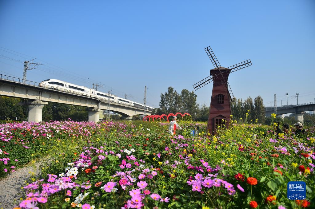 10月25日,市民在日照市东港区碳汇花海打太极拳。