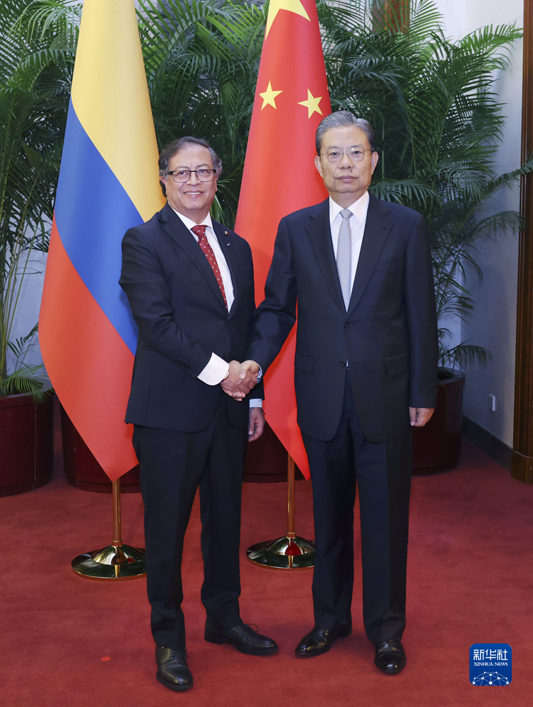 10月25日,全国人大常委会委员长赵乐际在北京会见哥伦比亚总统佩特罗。