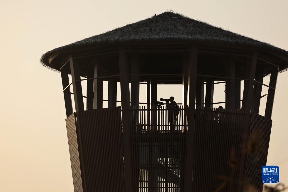 10月24日,韩战桥在雄安新区孝义河河口湿地瞭望塔拍摄野生鸟类。