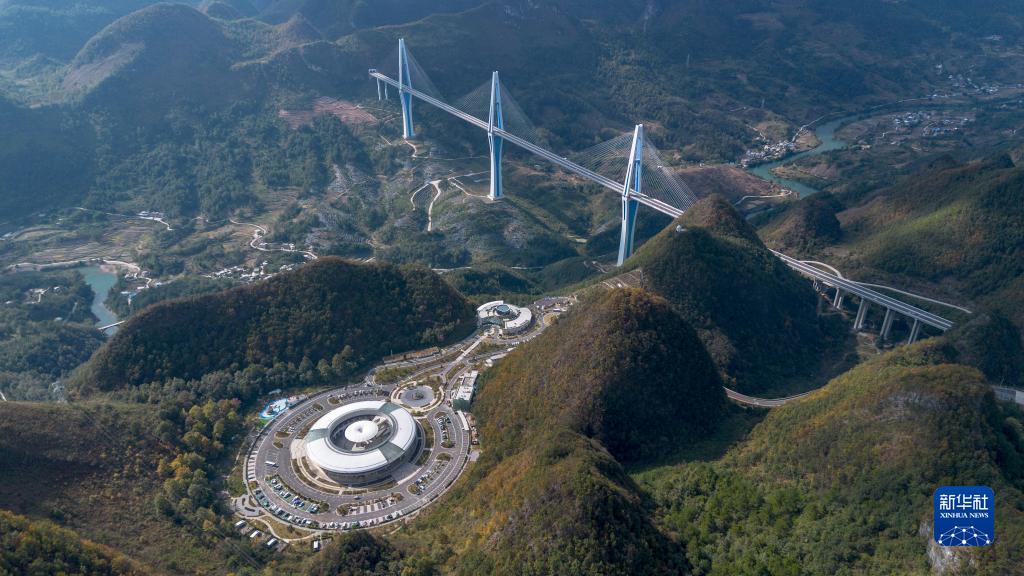 这是10月25日拍摄的“天空之桥”观光服务区和平塘特大桥(无人机照片)。