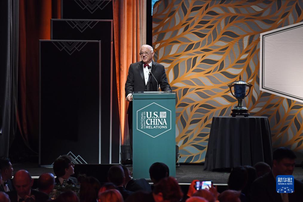 10月24日,美中关系全国委员会会长欧伦斯在美国纽约举行的美中关系全国委员会年度颁奖晚宴上讲话。