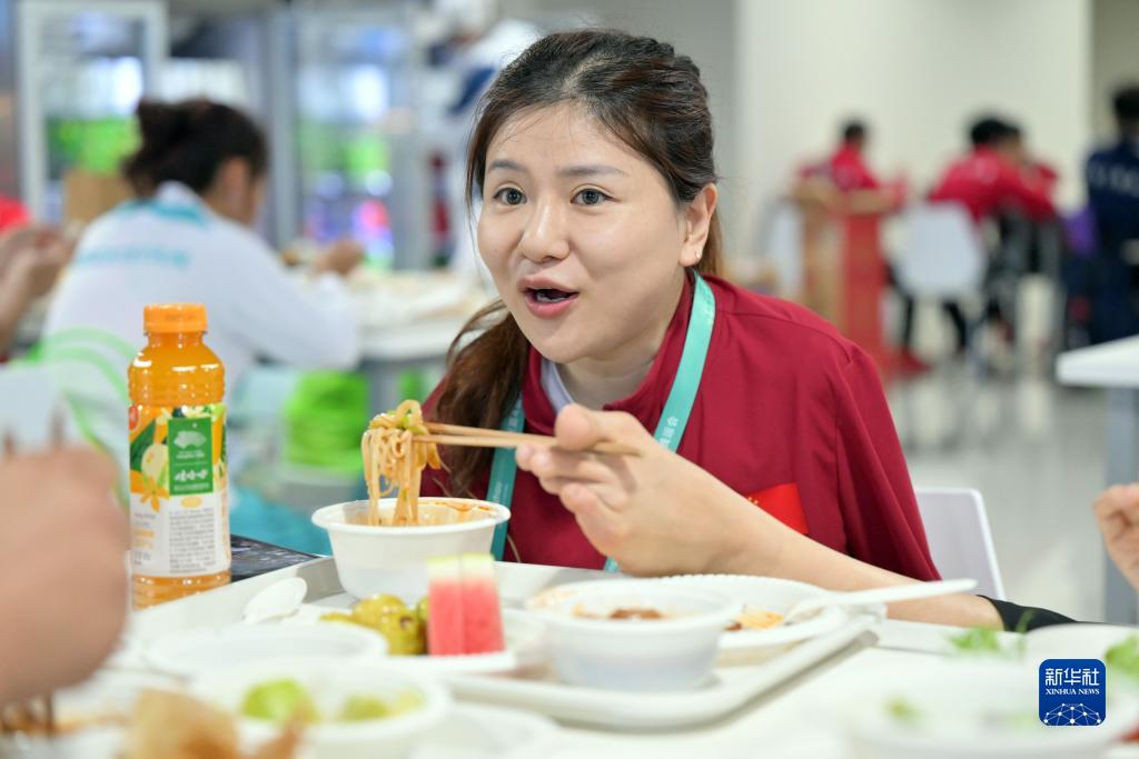 10月23日,卢冬在杭州亚残运会运动员村吃晚饭。