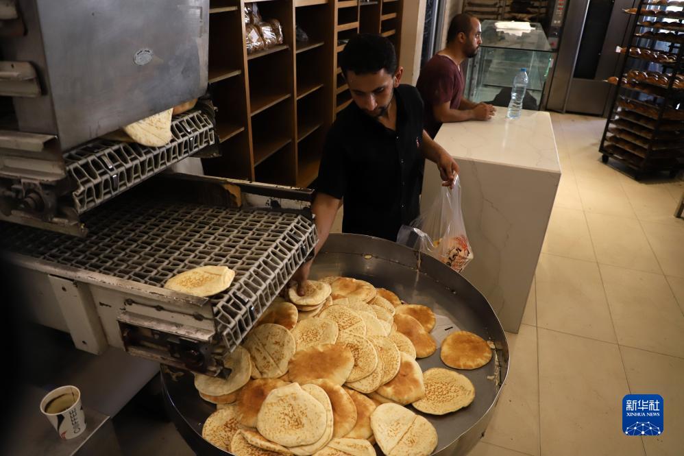 10月25日,在加沙地带南部城市汗尤尼斯,工作人员在一家烘焙店内制作食品。