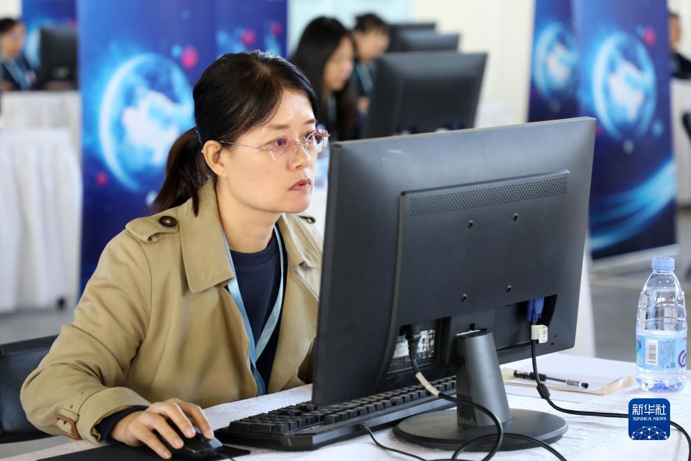 10月26日,参赛选手在进行电子商务师技能赛项的比赛。