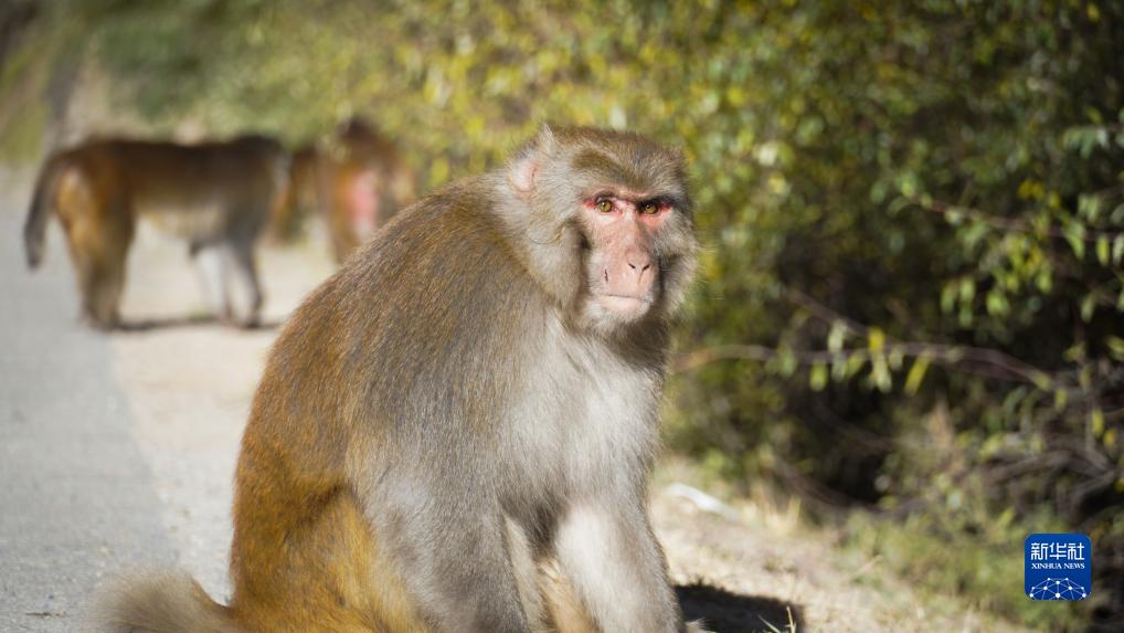 在317国道旁拍摄的野生藏猕猴(10月25日摄)。