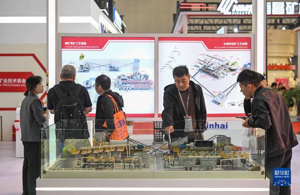10月26日,在天津梅江会展中心,观众在国际矿业展览会上参观矿业装备模型。