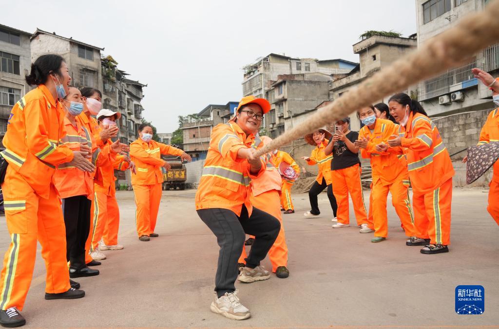 当日是环卫工人节,环卫工人参加多彩趣味活动,欢庆节日。