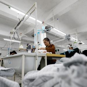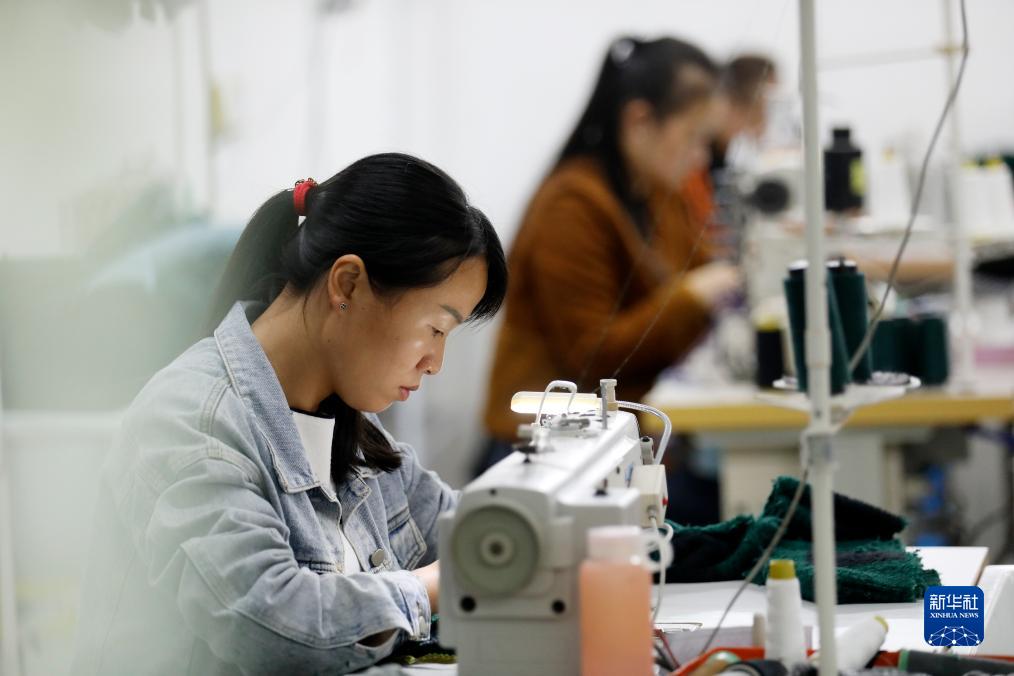 10月25日,村民在资兴市州门司镇州门司村就业帮扶车间加工服装。