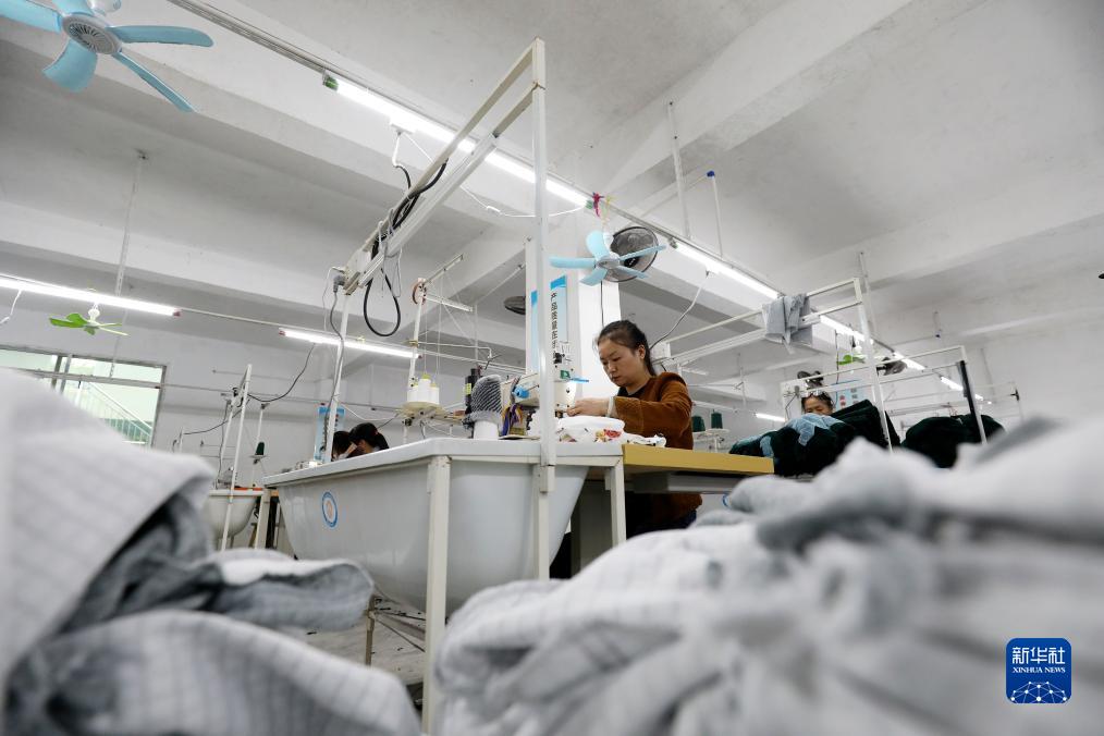 10月25日,村民在资兴市州门司镇州门司村就业帮扶车间加工服装。