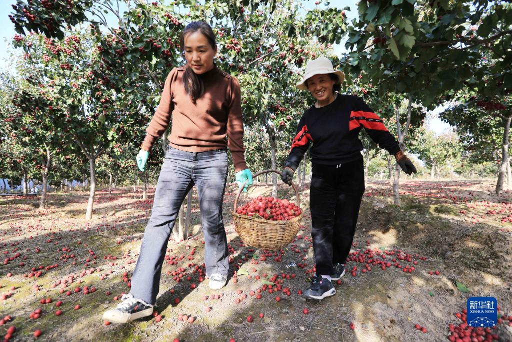 10月24日,甘肃省定西市临洮县玉井镇店子村农民在采摘山楂。