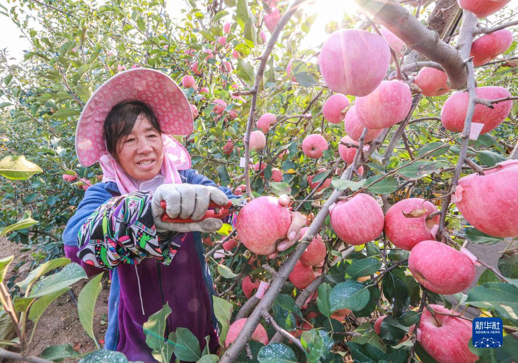 10月24日,果农在山东省荣成市夏庄镇一果园采摘苹果。