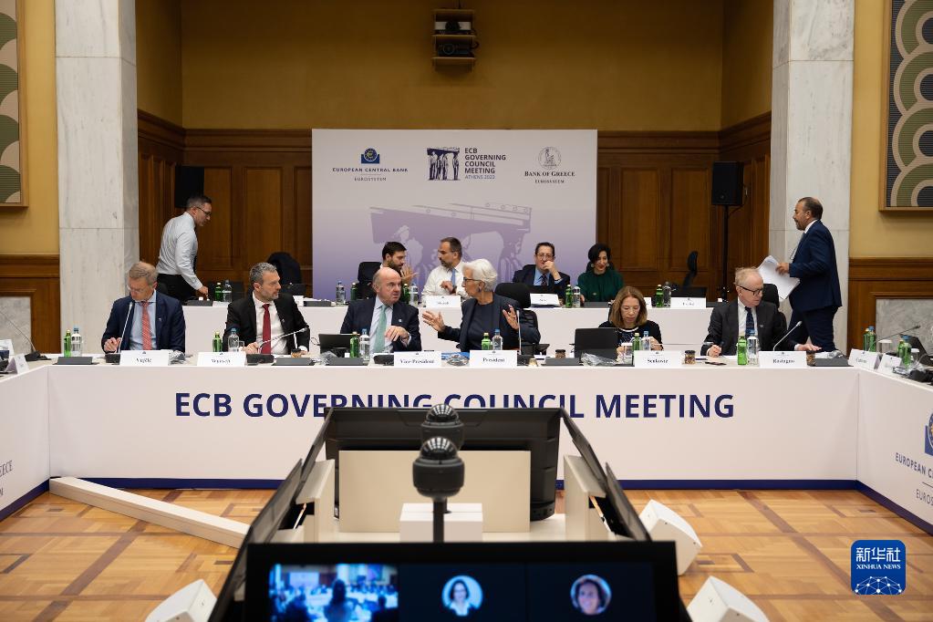 这是10月26日在希腊雅典拍摄的欧洲中央银行货币政策会议现场。