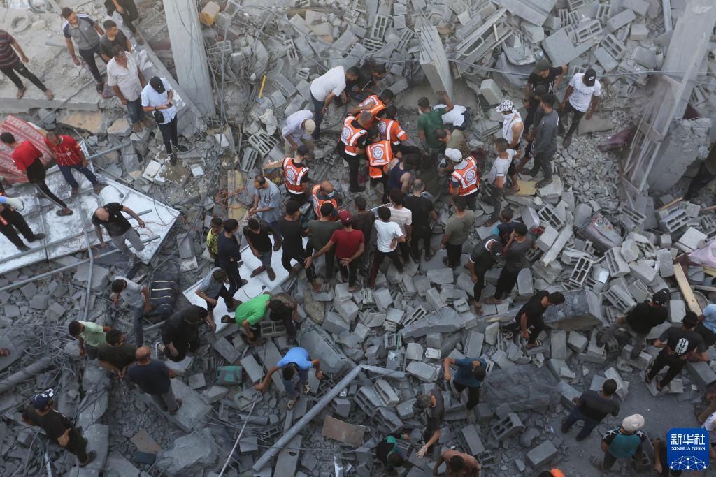 10月26日,人们在加沙地带南部城市拉法的废墟中救援。